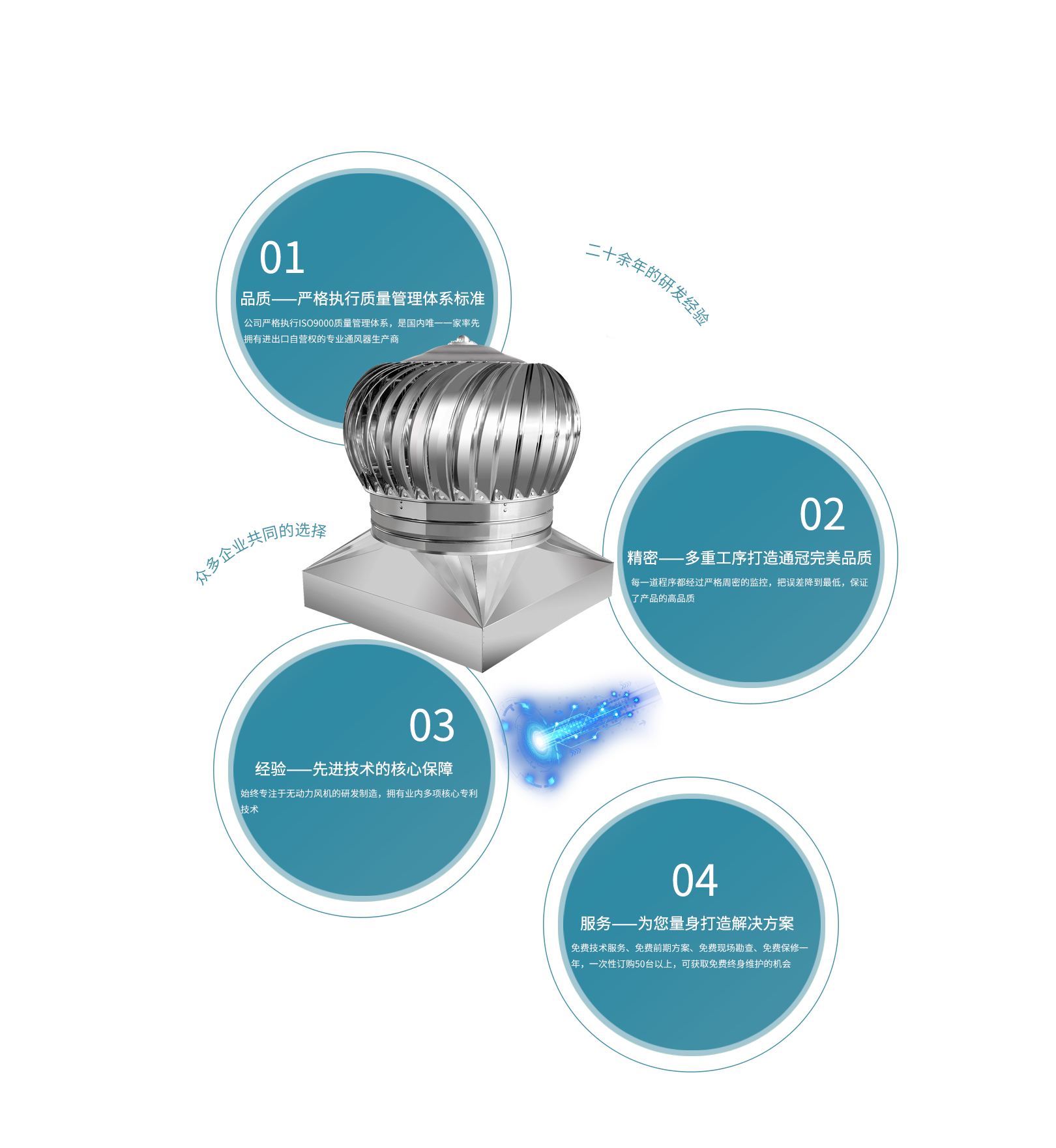 天長市通冠無動力風(fēng)機(jī)有限公司,是集研發(fā)、生產(chǎn)、銷售于一體的,專業(yè)無動力風(fēng)機(jī)生產(chǎn)廠家。公司坐落于205國道南京與揚州之間,位于省級高新經(jīng)濟(jì)技術(shù)工業(yè)園,交通便利。“通冠”有著一支技術(shù)精湛、服務(wù)非凡的隊伍。所有一線技術(shù)工人技術(shù)熟練、質(zhì)量意識強(qiáng)。公司嚴(yán)格執(zhí)行ISO9000質(zhì)量管理體系,一貫貫徹“以質(zhì)量為生命”、“以信譽為根本”、“以服務(wù)為基礎(chǔ)”的理念···[查看詳細(xì)]